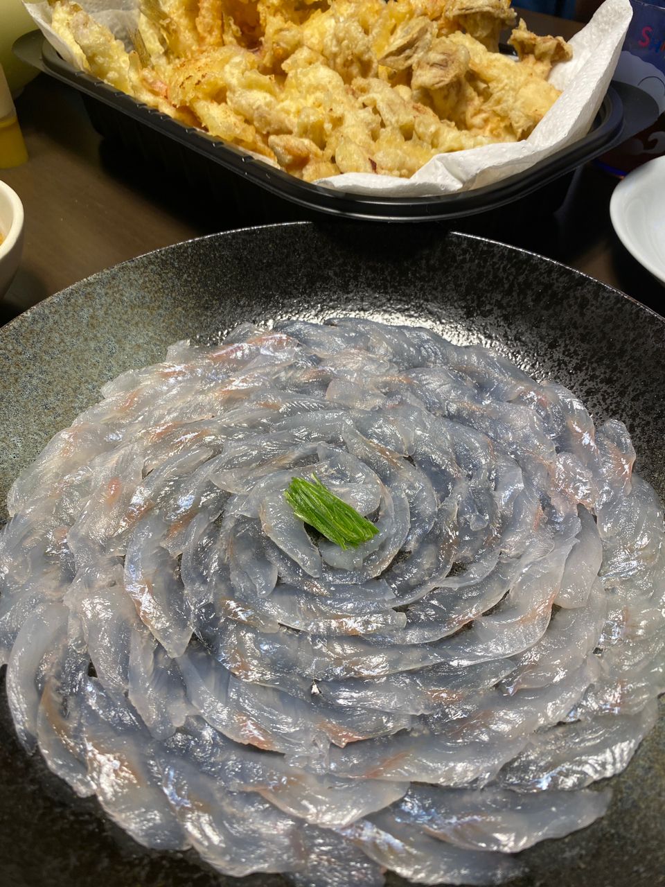 ちぃと面倒ですが、刺身にすると淡白な旨みが舌中に広がる上品なお味で、我が家ではうす〜く切ってポン酢と柚子胡椒でフグのようにガサ〜と贅沢に掬って食べておりますわ✨