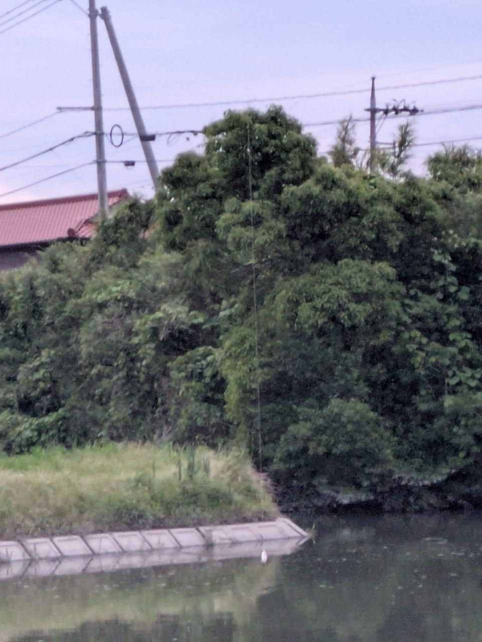 電線に釣り糸とルアー引っかかってるやん・・・