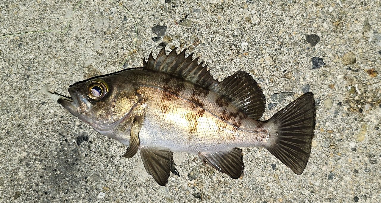 いつものゴロタのマイポイントは、アジアンなボーイズ&ガールズが大音量でBBQカラオケしてたので、少し離れでスタート。最初マニックで狙うも反応無し。ジグ単に変えたとたんに、ぐんと当たってエラ洗い、シーバスというにはかわいいチーバスをごぼう抜き。その後は当たりはあるも乗りきらず、これまたかわいいメバルを加えたところでライントラブルで心が折れました。でも楽しかったっす。