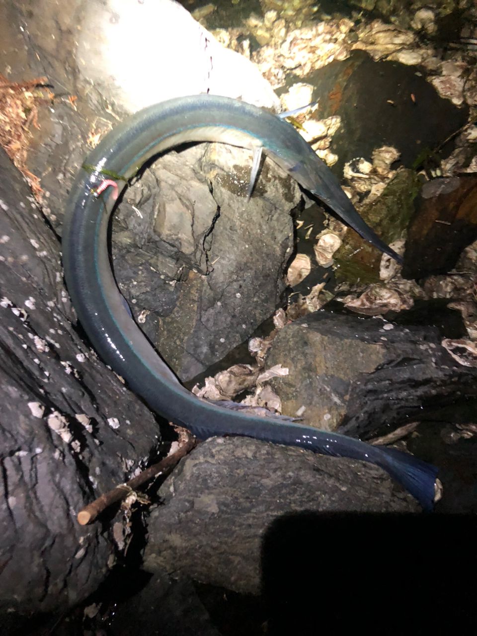 背中にジグヘッド刺さったダツ…