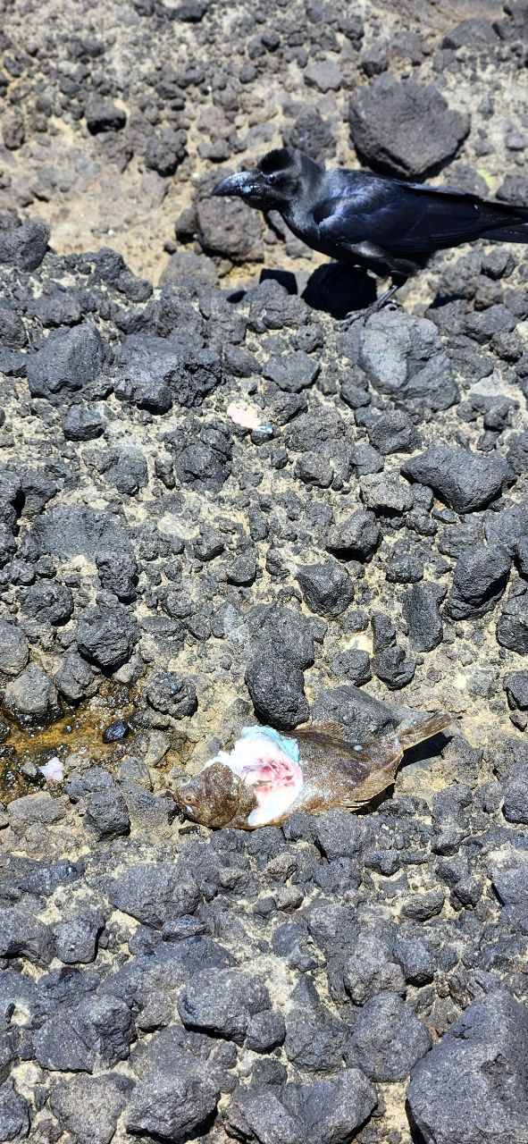 狙ってないヒラメが釣れて喜んでたら、知らぬ間に頭の良いカラスさんに保冷袋のチャックをご丁寧に開けられお食事⤵