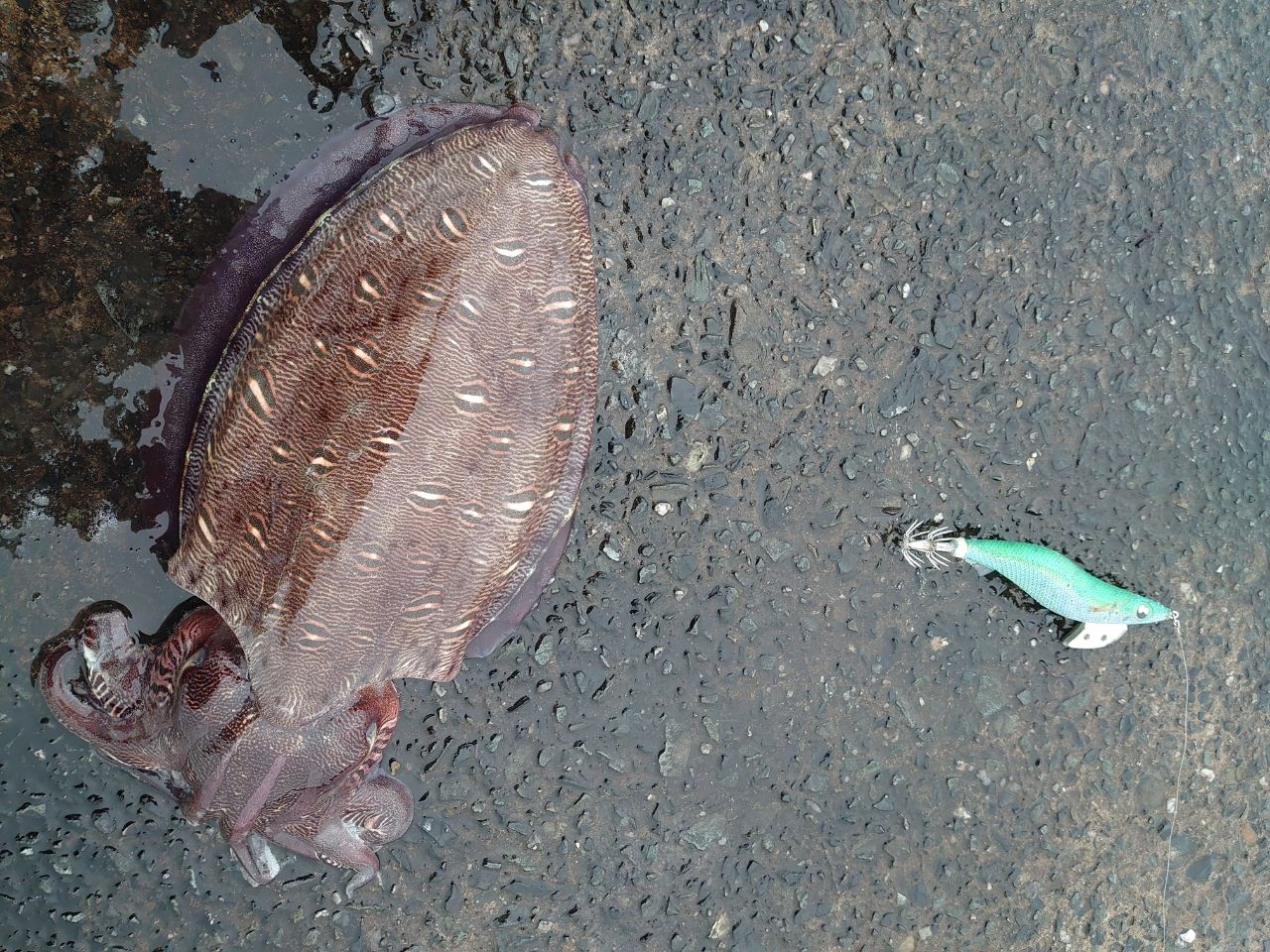 あんまし日中釣りに行くことはなかったですが、モンゴウさんが遊んでくれました🦑