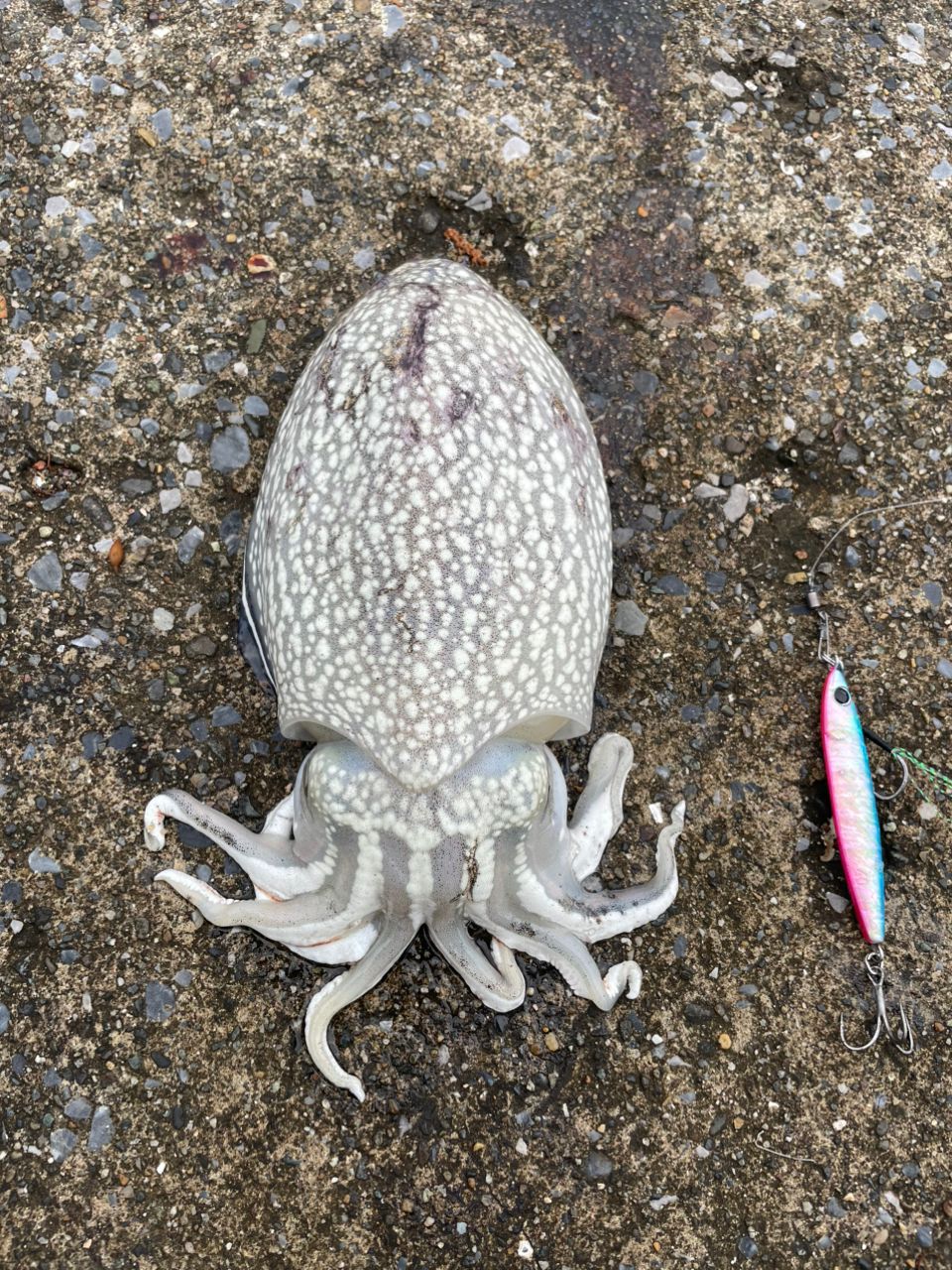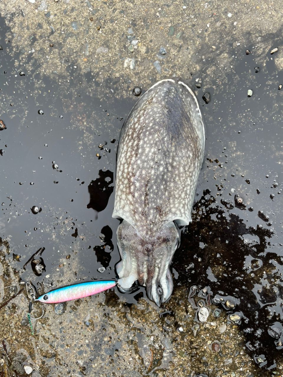 ただ重たいだけなのでゴミかなぁ〜と思いながら巻いていたらなんとイカ!!
