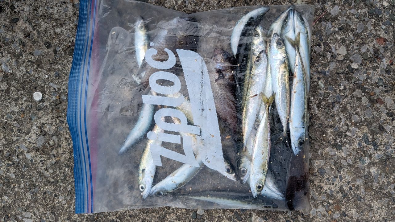 カレイ40、アナゴ60、小鯖沢山、スズメダイ、カサゴ、メバル、フグと色々釣れました。大鯖は朝に数本だけ上がってました。夕方釣れるのかな?