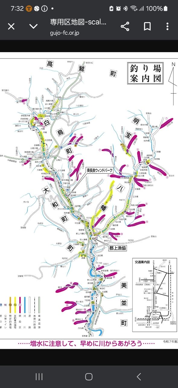 マップの中心は釣果のポイントを示すものではありません。- アユが釣れる近場の釣果
