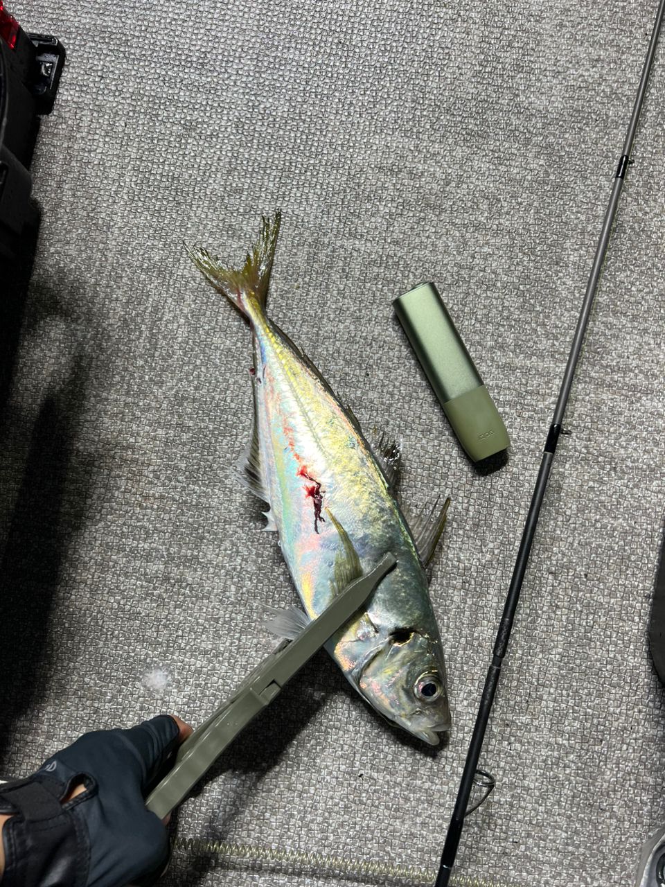 そこからはアジやってみるも当たれど乗らず…