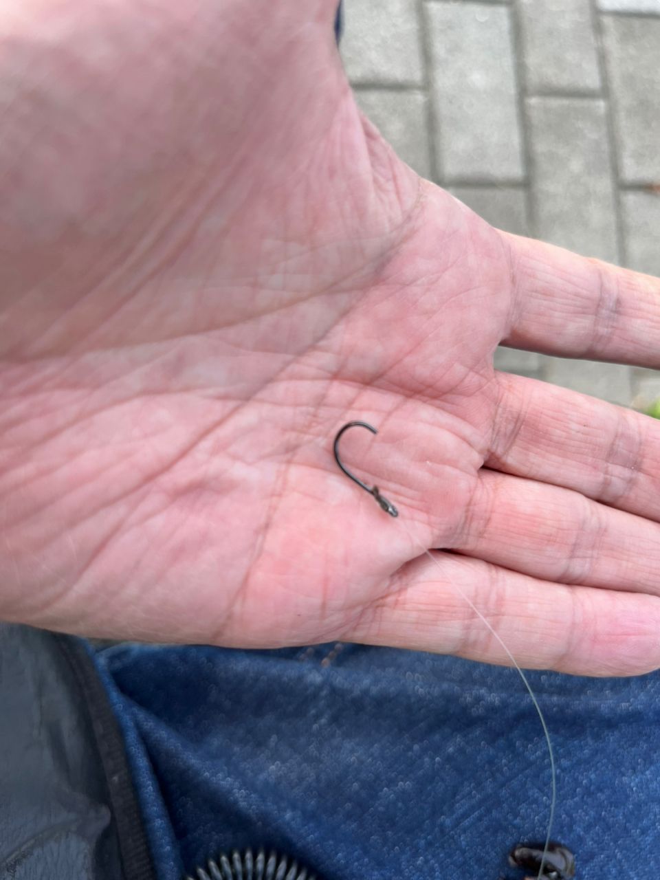 その後1時間以上アタリがありません。 自然と足は前回、前々回大型を連発した場所へと向かいます。 ふわふわ落としているミジ団子を節のある引き込みアタリを見せた、これまた49cmの元気いっぱいの年ナシ寸前でした。 柳の下に3匹目のドジョウが居てました。 ここからアタリが続きますが、次の奴は結構な引きの途中で姿を見ぬままバラシとなりました。 納得がいかず、仕掛けをチェックするとなんと針先が折れていました。 年に一度くらいこういうのがありますね。