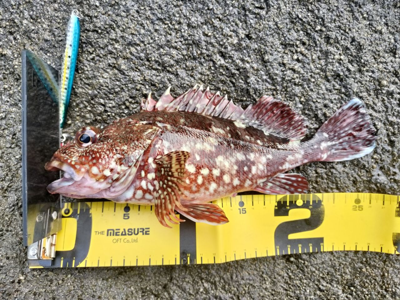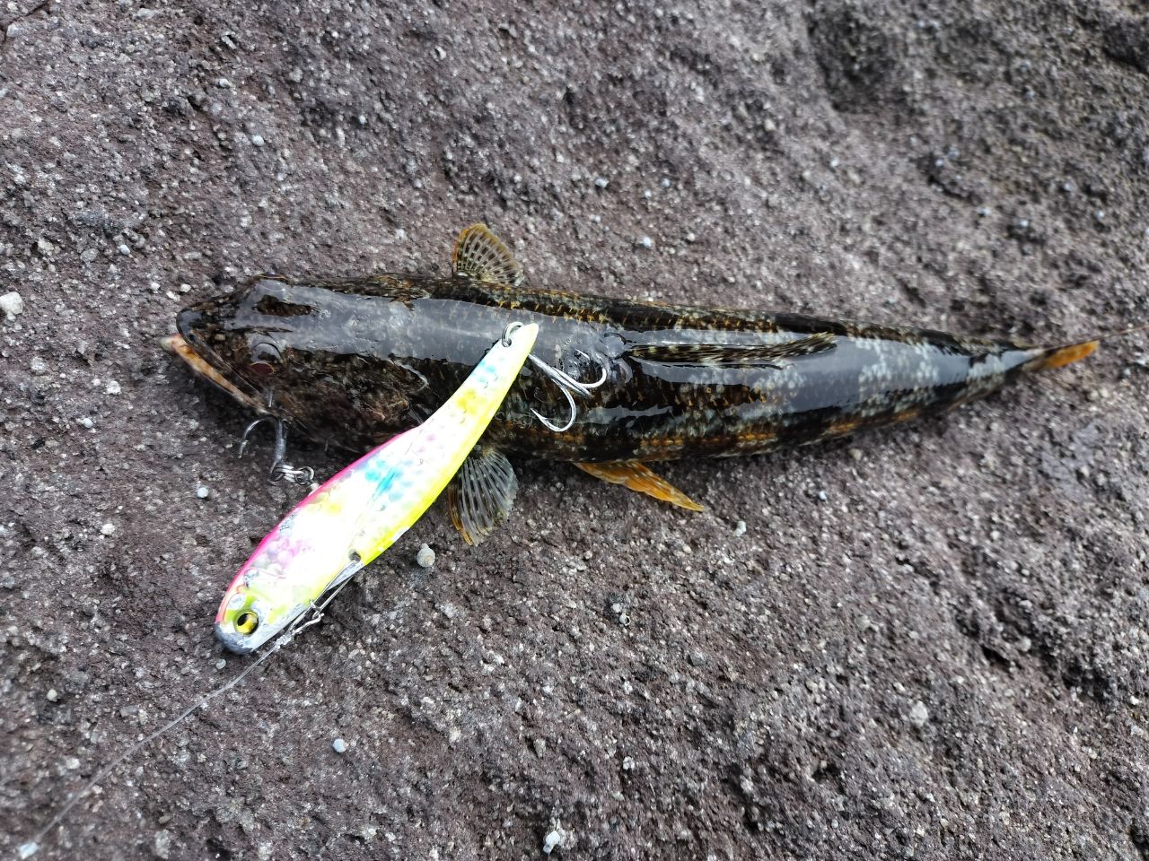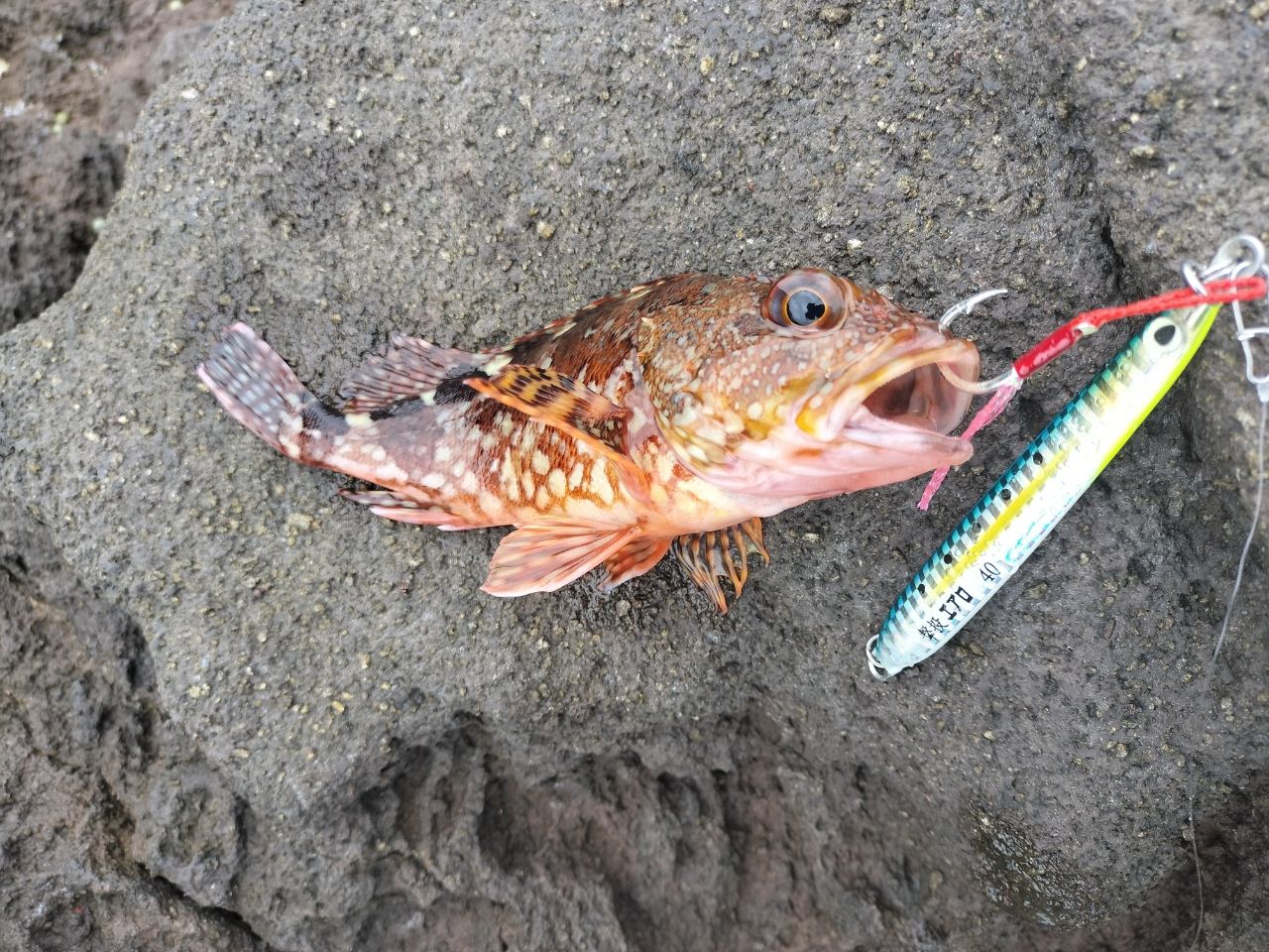 初めてジグでカサゴ釣れて嬉しい。バイブレーション(鬼丸)で魚釣ったのも初めて。