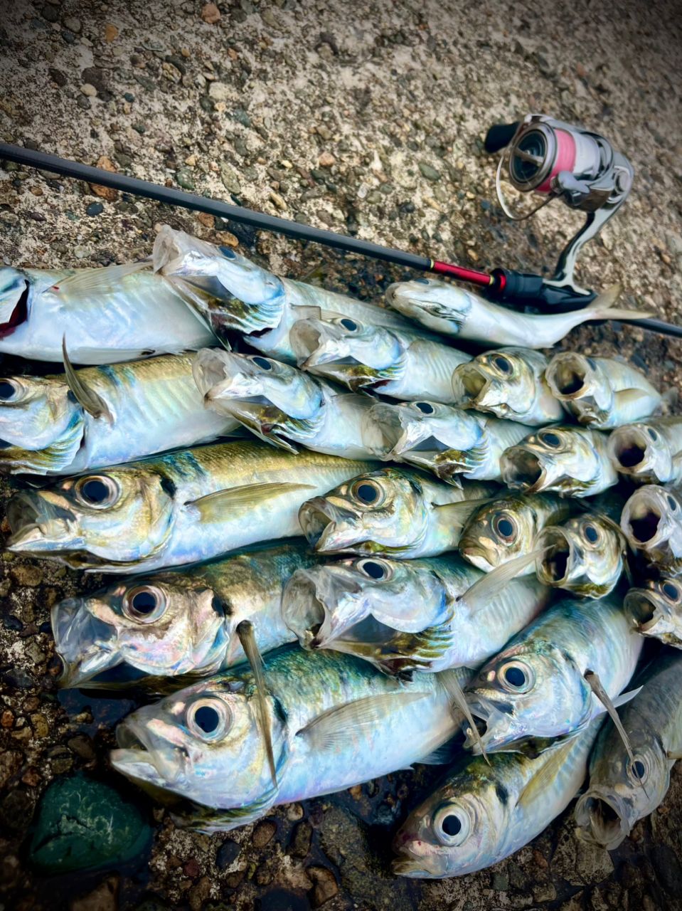 朝イチは小さめのアジばかりでしたが