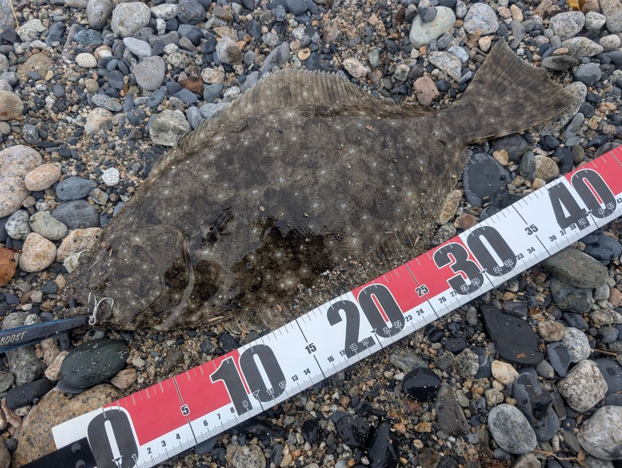 片口イワシが湧いたのをみてキス仕掛けからミノーにチェンジ。数投したらゴン!2年ぶりにヒラメ釣りました😁