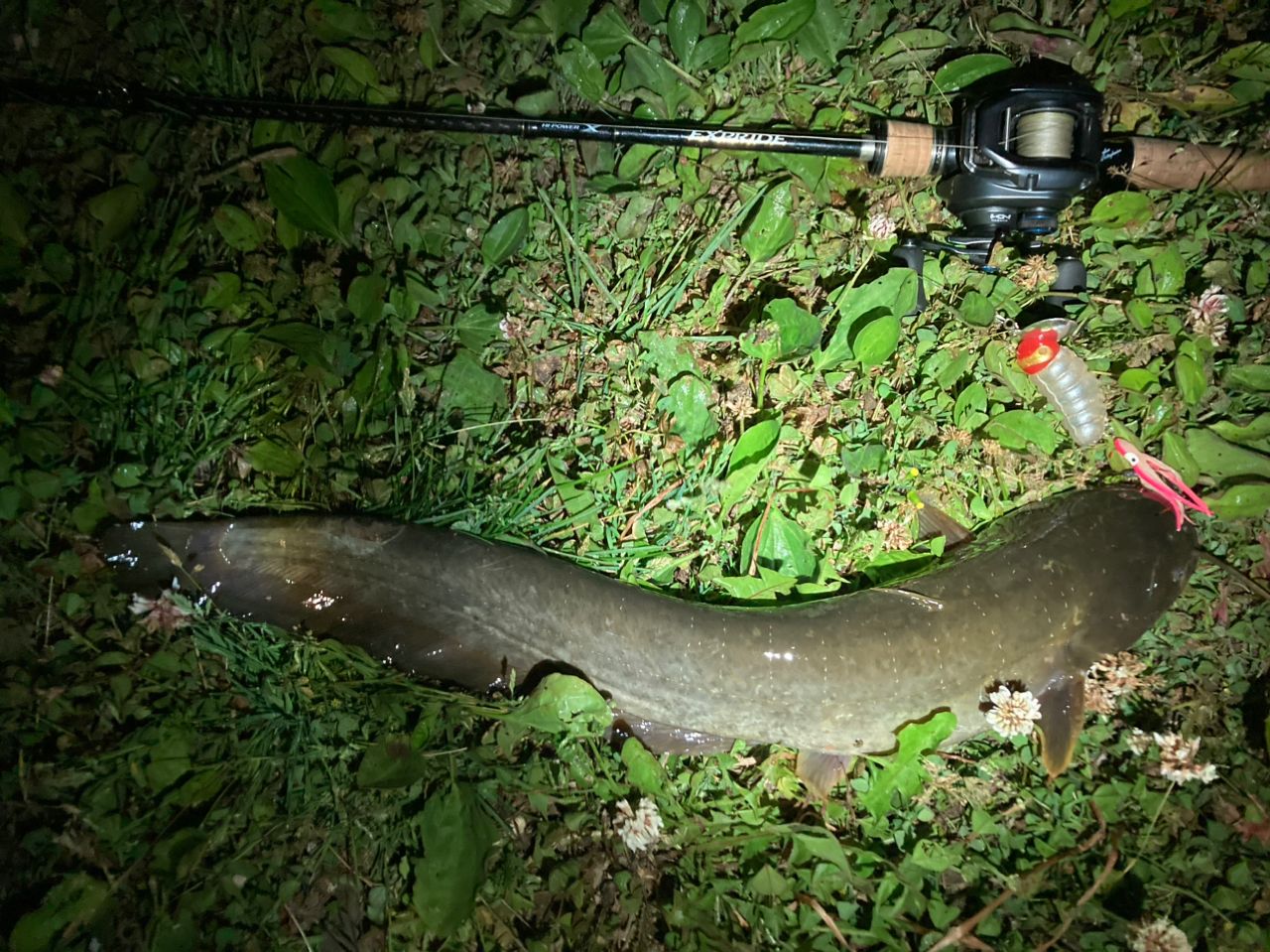 水路に入ってる個体はスポーニングの真っ最中なんでしょうね。ジッとしてルアーには無反応、もしくは着水音で一目散に逃げていきます。水路直前の本流の個体は果敢にバイト!良い記録が取れました。