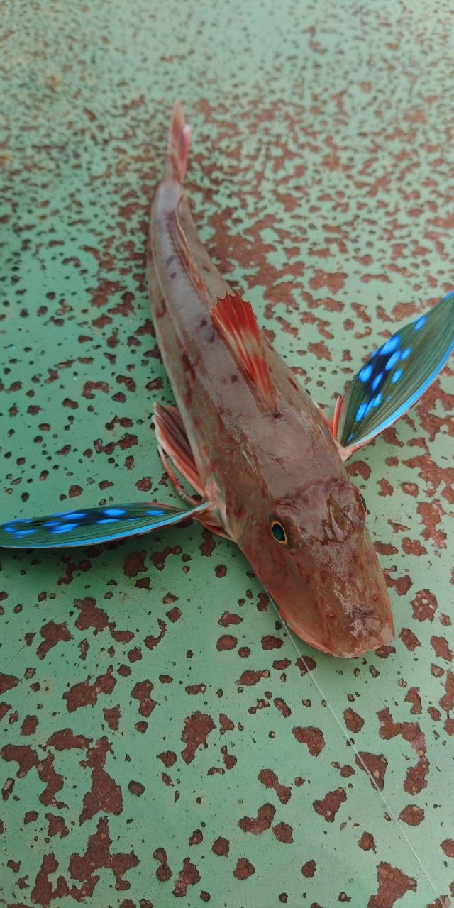 午前中はキスの当たりが多く、珍しくホウボウが釣れました😆