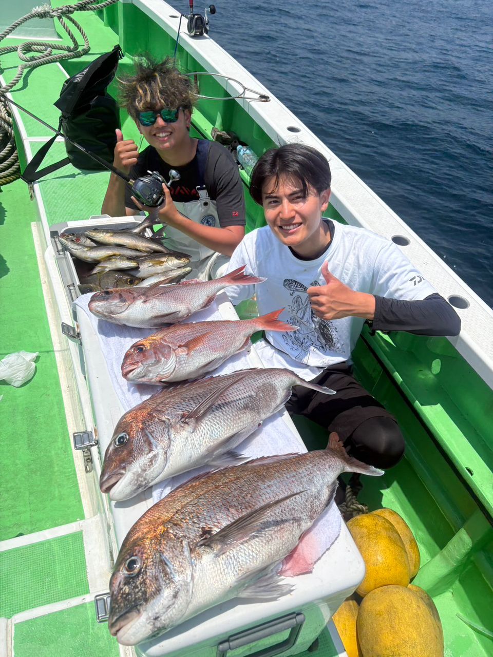真鯛を狙いながら30cm前後のイサキも食いつきが良かったです、クーラーを埋めるほどゲット!