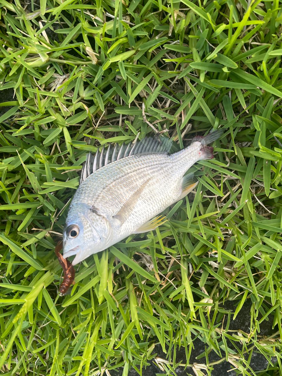 尾びれ食われて血が出てるチビレだった。そんな中なんかゴメンよー
