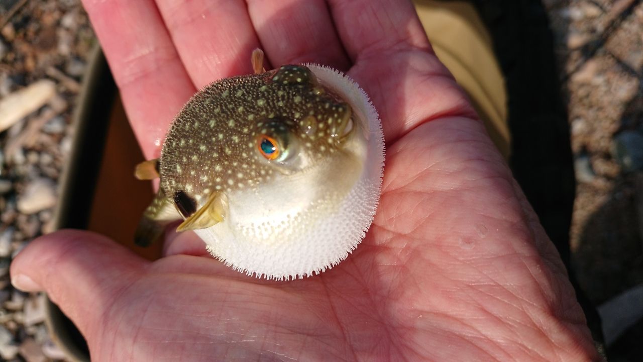 続けて釣れたのはミニフグ❗毒持ちのコンビか❕🤣