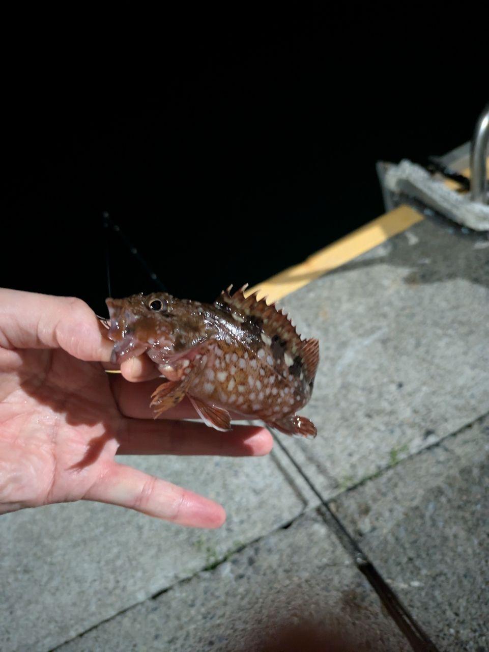 で、釣果はチビカサゴ😱とワームにちょっかい出してきたイカと大量のドンコ😵メバルボウズをくらってしまいました😭