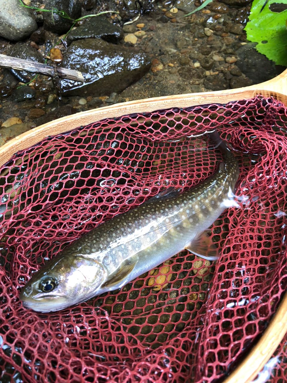 放流魚なのか、こういう個体群なのかお腹が白くて朱点の色が薄いイワナが多い。