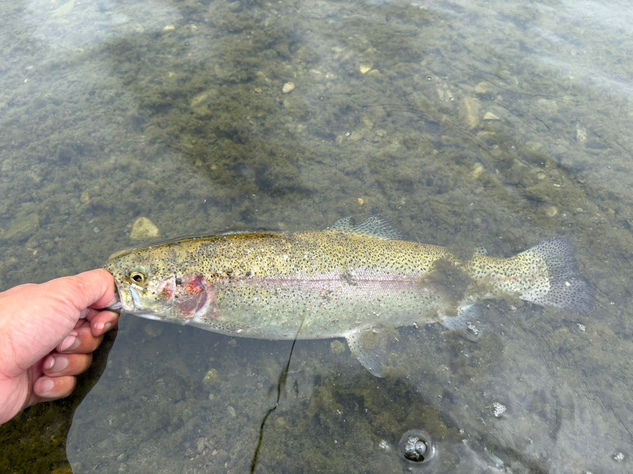 なんか違和感を感じてフッキングしたら巨大ニジマス釣れました💦