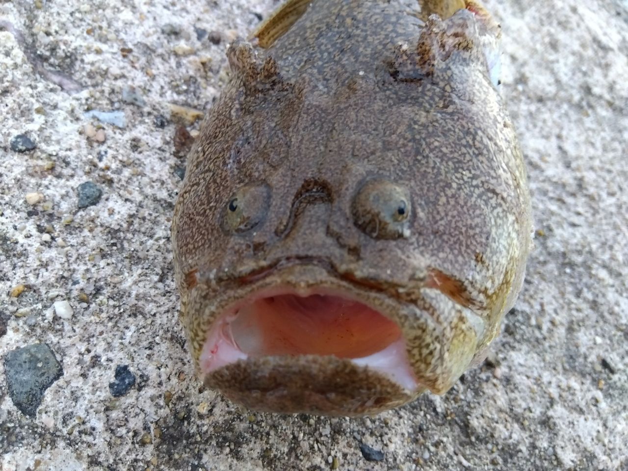 なになにすげーへんな魚釣れた😳ミシマオコゼというらしい🤤今日も1日お疲れ様でした😌