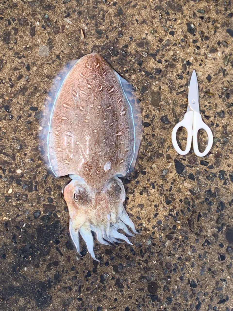 キス釣りに行っていたのですが、餌木か連れてしかも釣ってくれとばかりのコウイカが見えたので、キス天秤から餌木に変えてサイトエギングでゲット出来ました。