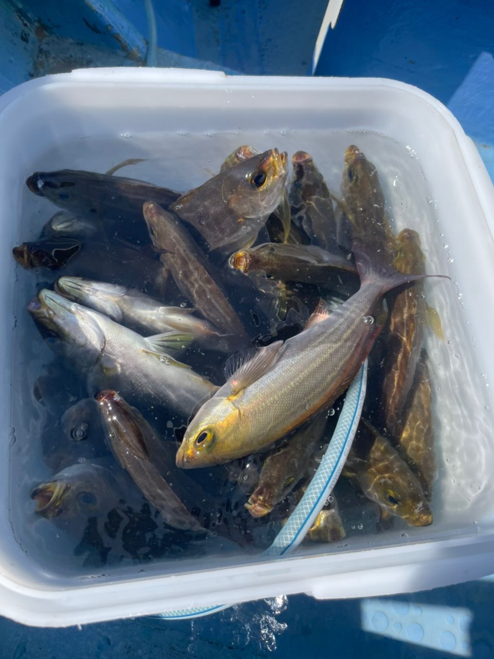 今日は、成銀丸で会社の同僚と3人でイサキ釣り。釣座は右ミヨシ側。自分は船首部分で実釣果開始。直ぐに型を見ることができ、というか入れ食い状態で、直ぐに20匹くらい釣れ、その後も鈴なりにドンドン釣れます。気づいたら魚入れる桶は、イサキでびっしり。数を数えたら87匹で船中二番手でした。