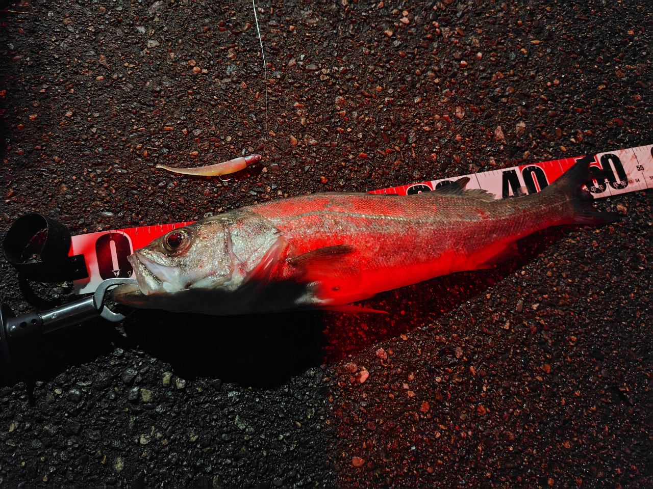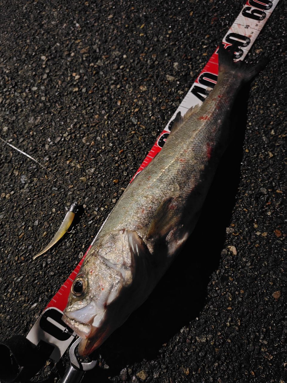 もそっとしたアタリで、シーバスの引きにしては、エラ洗いしませんでした🤔