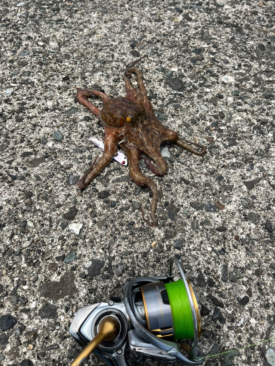 起きていて初挑戦🤩✨思うように釣れなかったけど何とか1タコ雑魚1。9時半頃ジグに青物orビック根魚が掛、その後根に潜られ1時間の沈着状態😅我慢できなくなりLINEアウト覚悟で引いたらPEが切れたー😭なんだったんだろうね🐟さて今から安全運転で帰途に着きます🚙またリベンジしたいな🎣