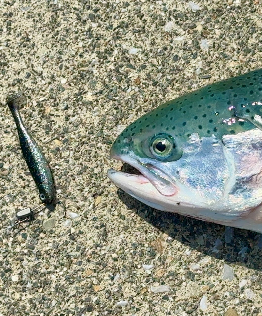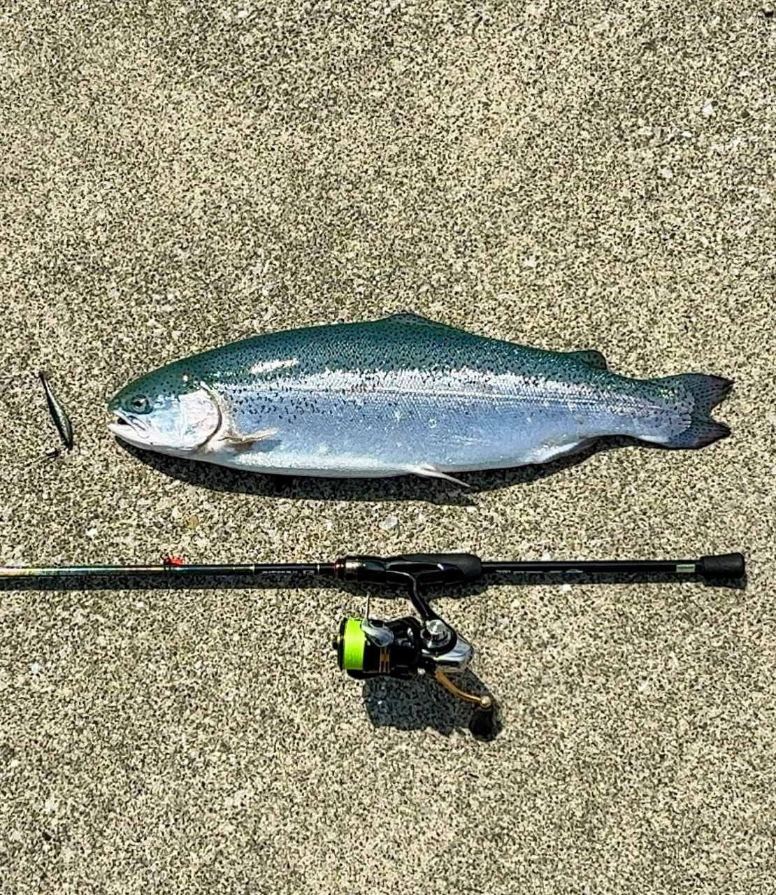 シグ、プラグを投げたが見切られ、ハゼドンシャットの黒(カタクチ)で、針を伸ばさましたが何とか1匹釣れました🎣持ち帰り美味しく頂きます♪ 次は、スルメイカ🦑を狙い場所移動します。