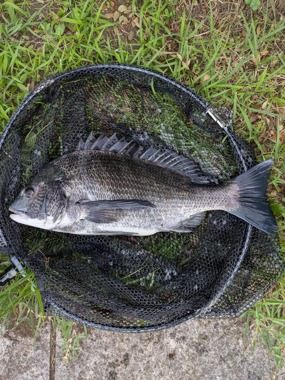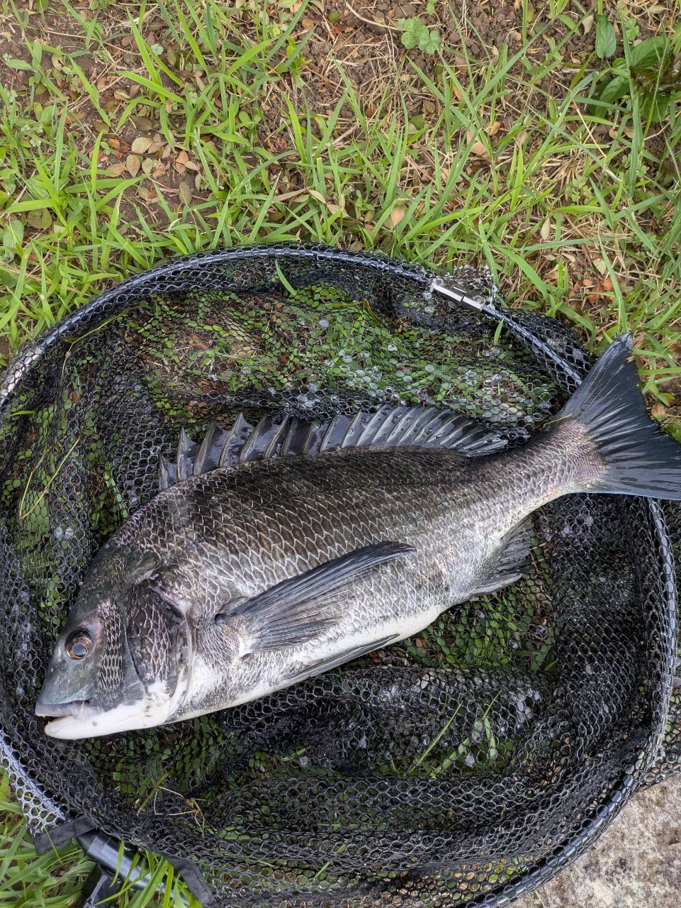 徐々に流れも早くなりだしそろそろ1時間。これでラストかなと落としたところに流れよりさらにススス〜。しかしここからが問題で調度大量のゴミ集団の中😱ラインに絡まれながらもどうにかタモ入れ。