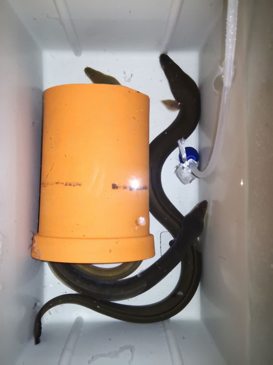 自宅のイチヂクの木の根元を掘って取ったミミズさんを餌に、今日もうなぎ釣り〜
