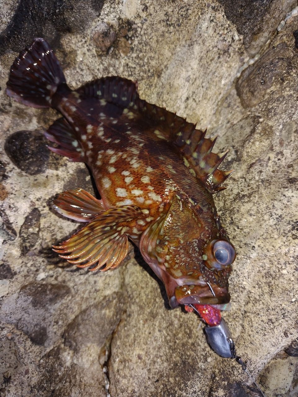 山形遠征、既に青物は釣れる気がしないので久々ロックフィッシュ!キジハタ君が遊んでくれました ♪(^ー^)ノ