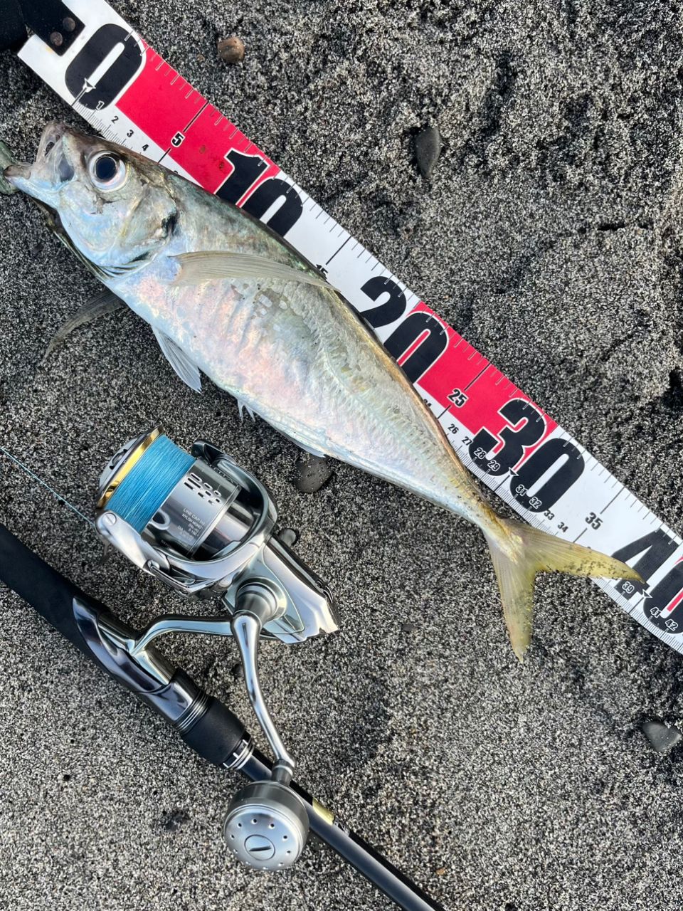 メタルジグをボトムまで落とし巻き上げ開始時にゴンッ!その後は正体不明のバラシ2回とえんぴつのみ、、今年初の尺アジ❣️美味しく頂きます! 感謝‼️