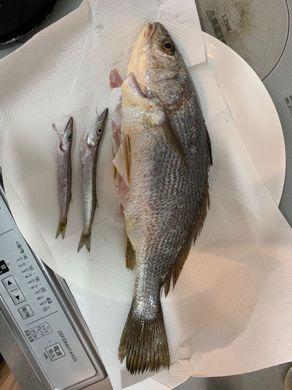 小サバ、えんぴつカマスが激減し、えんぴつ2本だけで終わりそうでしたが、帰りがけに戻りながら投げてたらまさかの良型ニベ😃ニベってジグサビキで釣れるんですね😅