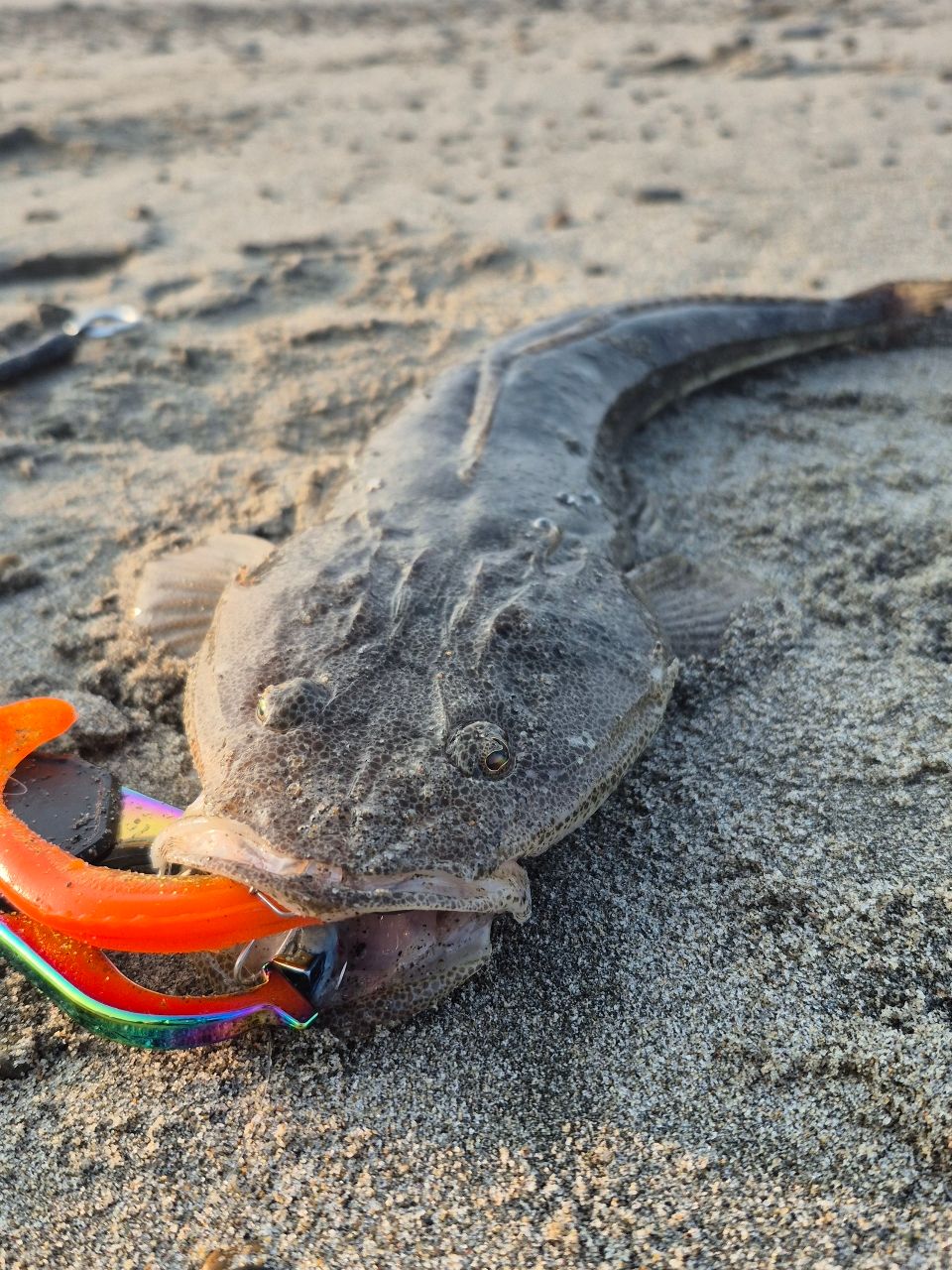 午前中に豊橋で用事があるのでサクッと朝マヅメ狙いで行きました。久しぶりの海岸に来てみたら意外と混雑していたので空いてる方にランガンしていると浅場と深みの境目で流れも効いているポイントを発見😁雰囲気良いし、いかにも居そうと思っての数投目で来ましたよ👍ガンガン叩いてくれてファイトを存分に楽しめました。周りの視線を感じながら引きずりあげたのは良型お持ち帰りサイズのマゴッちゃん🤩