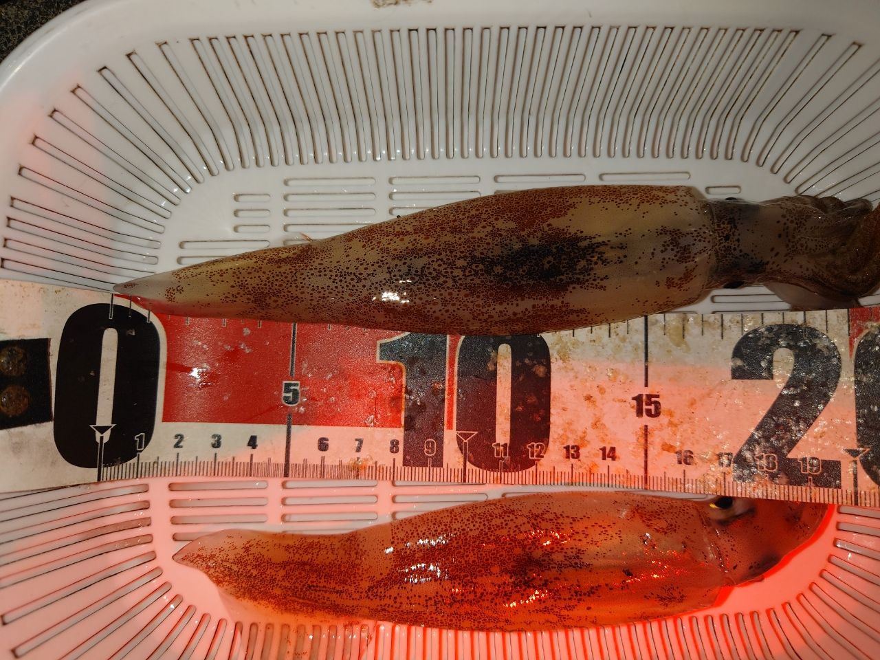 20時エントリー ポツポツ釣って22時30まで これデカいんでない?って個体測定してみたがそんなじゃなかった😂 かごには横に入らない大きさ お月さんでてたけどな