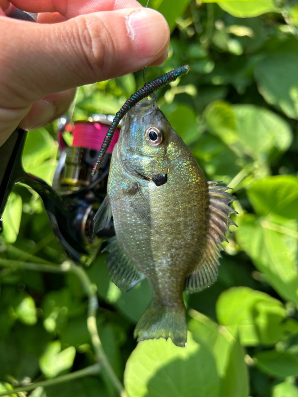 小バスさんと厳ついギルさん、稚ギルさんを1匹ずつ釣って早めのお昼休憩です🕛😄
