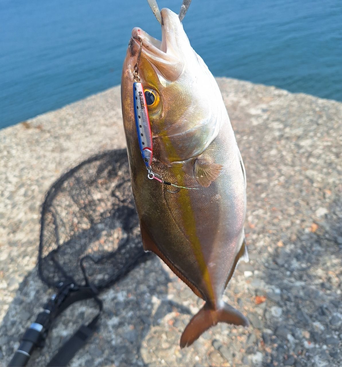 追記:胃袋から出てきたベイトは6cm程のタナゴ?が出てきました。ドラッグメタルキャストやダックスのような小粒でファットなボディのジグのほうが反応いいかも…?