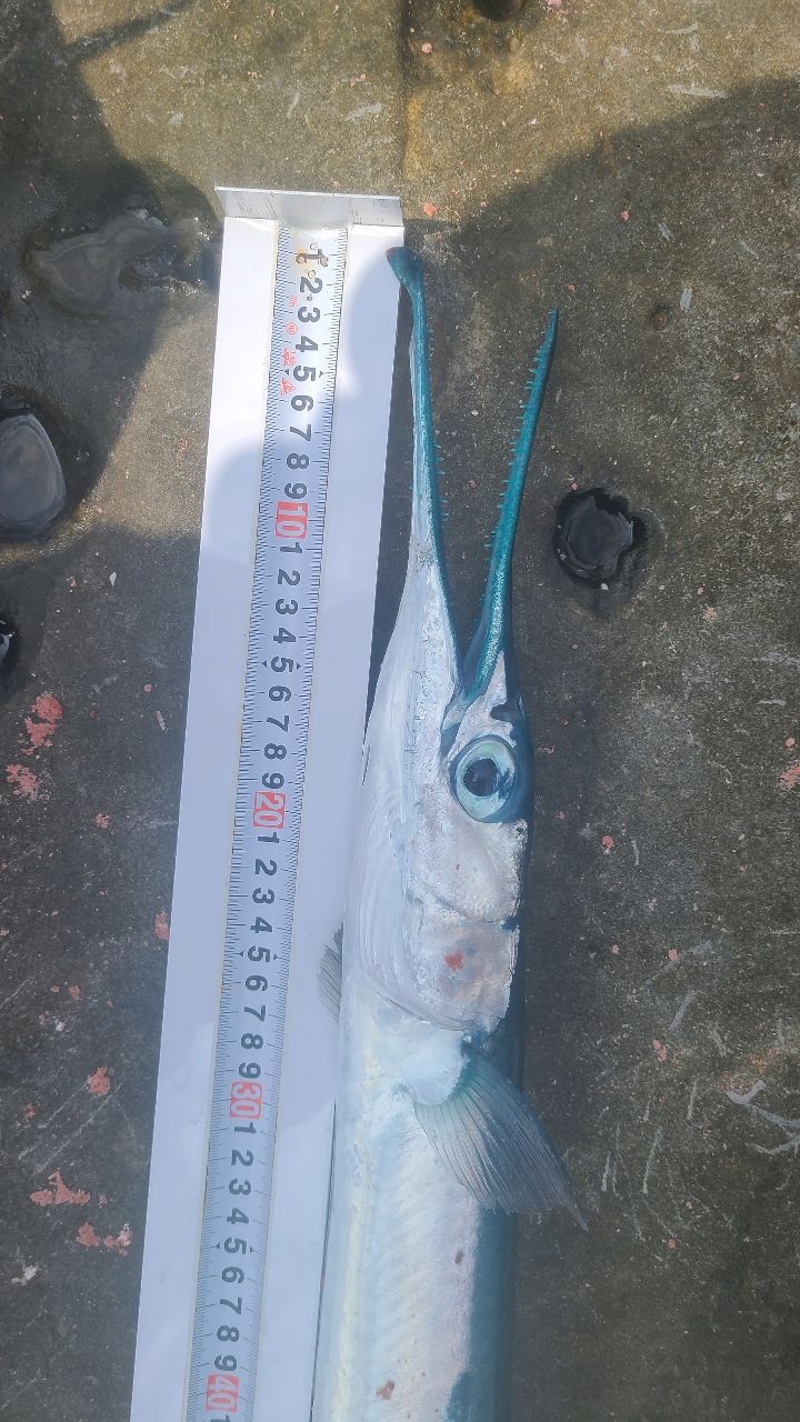丸々としてたので持って帰って食べてみようとキープしてたら港に戻って夜釣りのお客さんが「ダツちゃいますよオキサヨリやと思います 美味しい魚ですよ」と教えてくれ