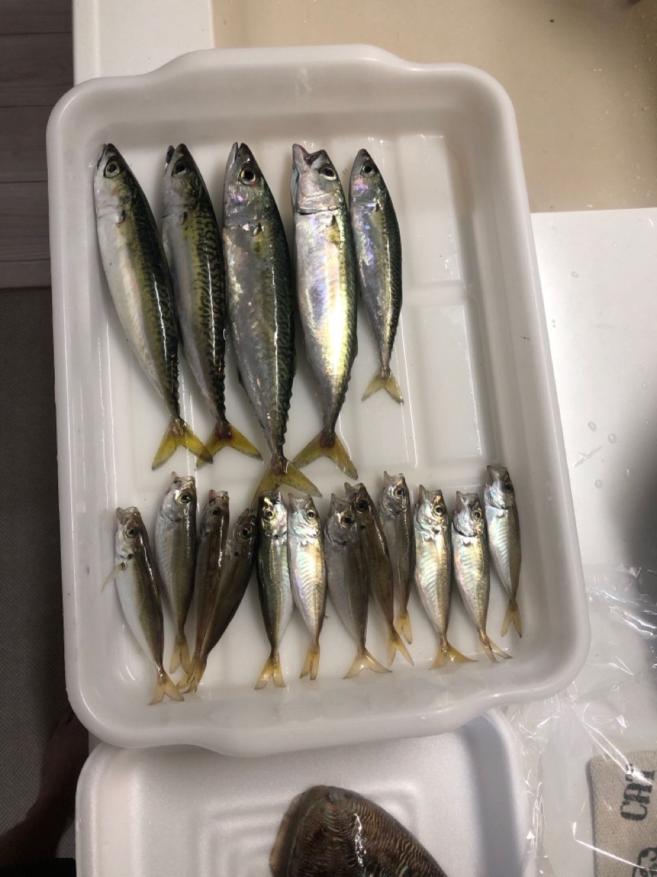 豆アジ、少し大きめのサバです。今回は、少し風がありましたので、港内です。