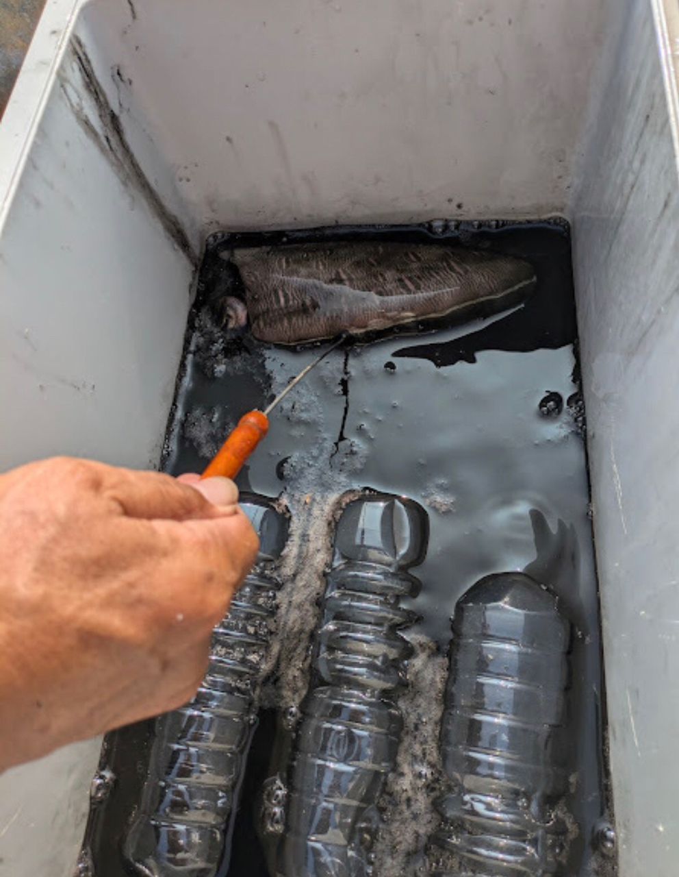 そのまま、クーラーボックスに入れましたので、スミで大変なことになってしまいました。