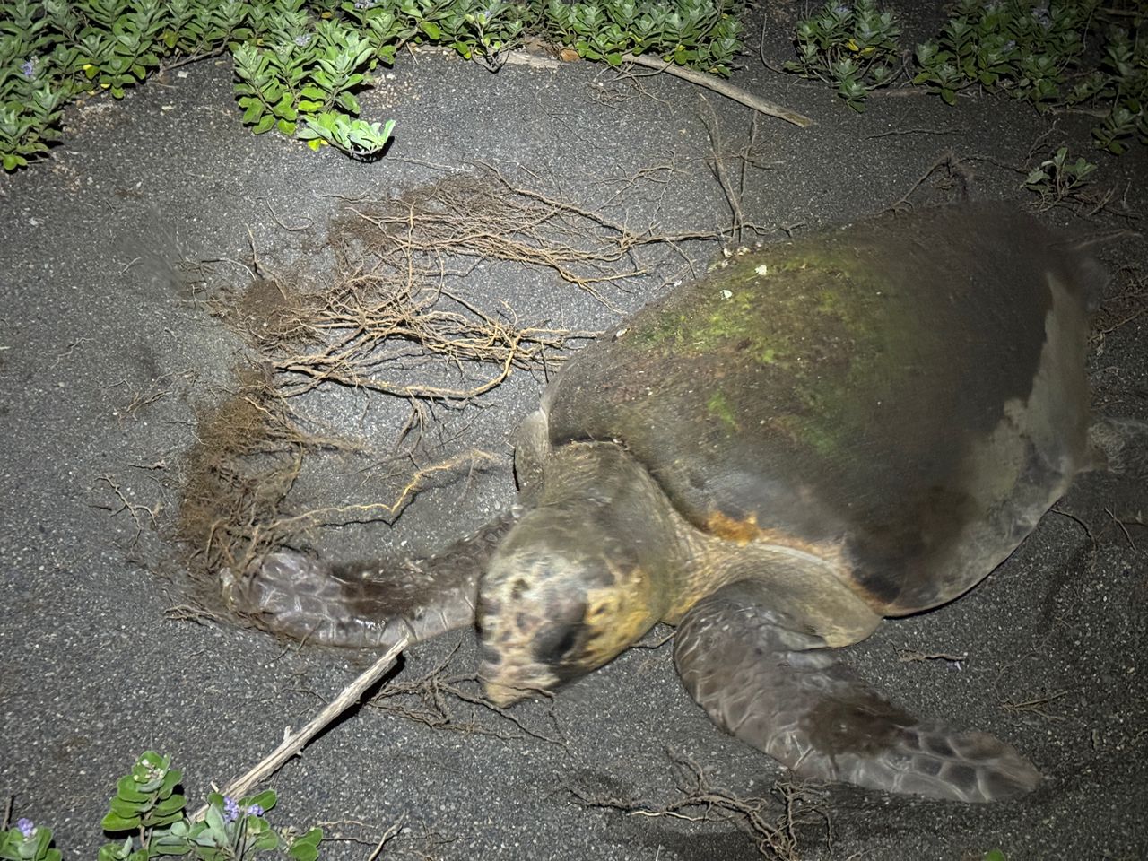 人生初の海亀産卵シーン(卵は見えなかった)だったので思わずパシャリ。