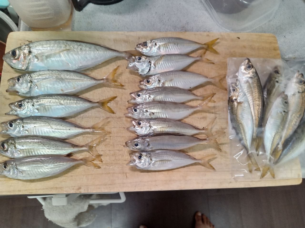 右の袋は朝釣れた分。