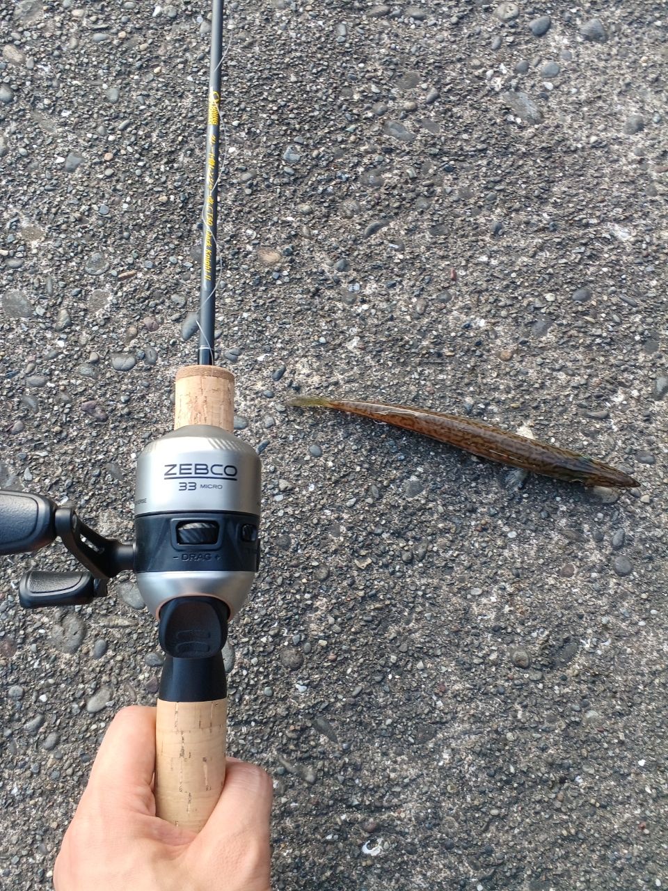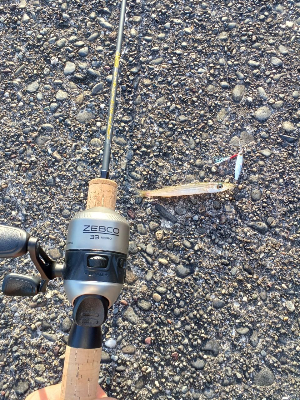 元々、スピンキャストリールをつける予定で計画していたので、ゼブコの33マイクロを購入して早速釣行に。