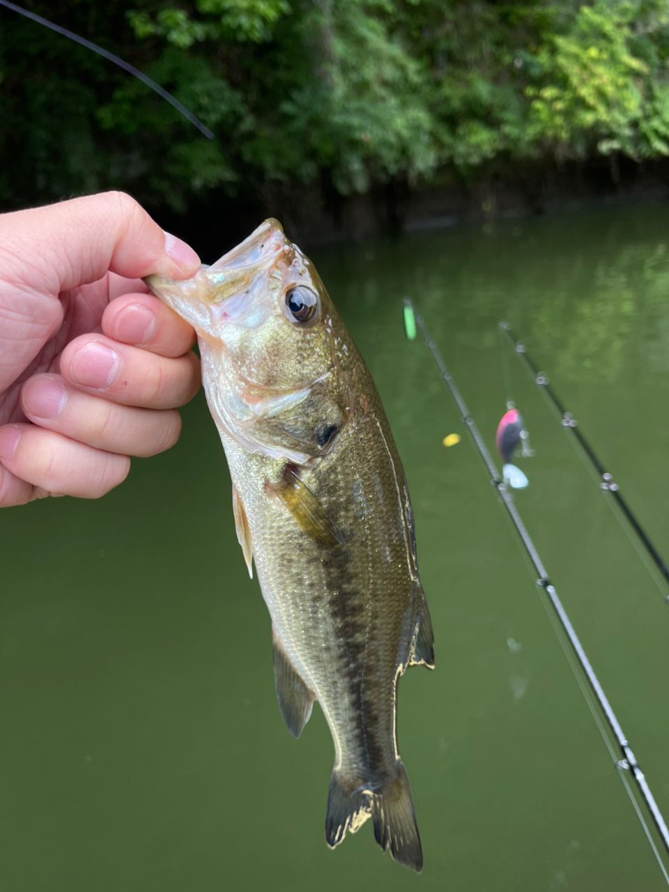 20cmくらいの子バス無限釣れる。