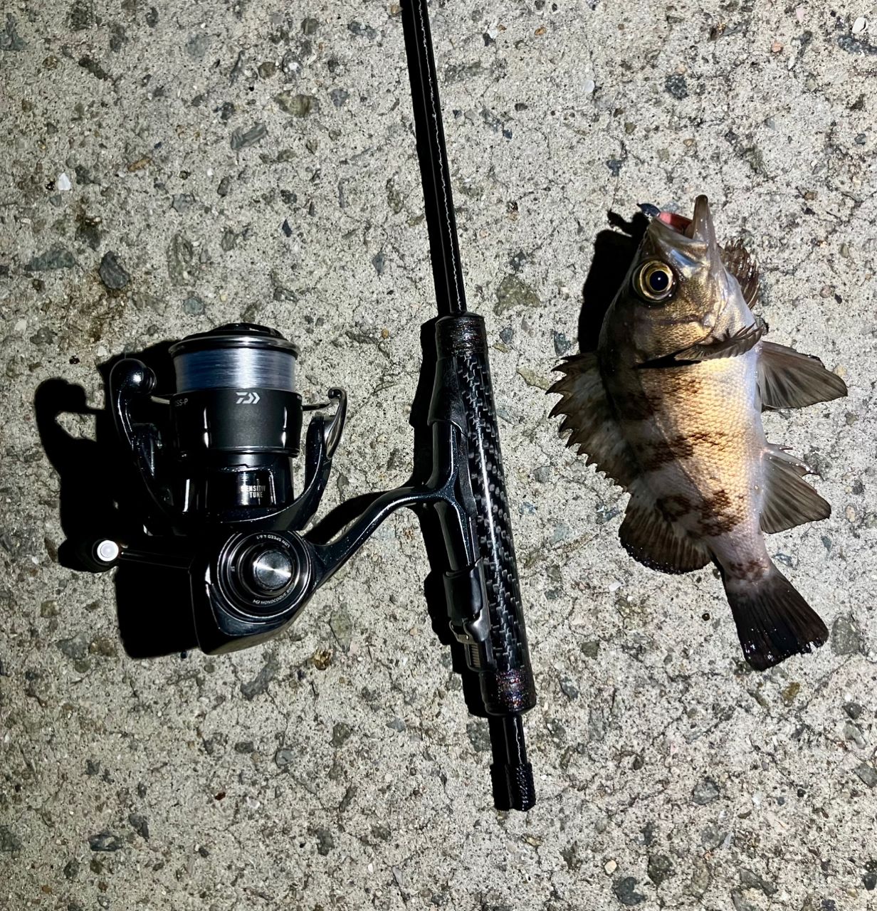 中アジ1匹釣れたけど、群れは居なかったようで続かず、堤防でメバルと少し戯れ🐟