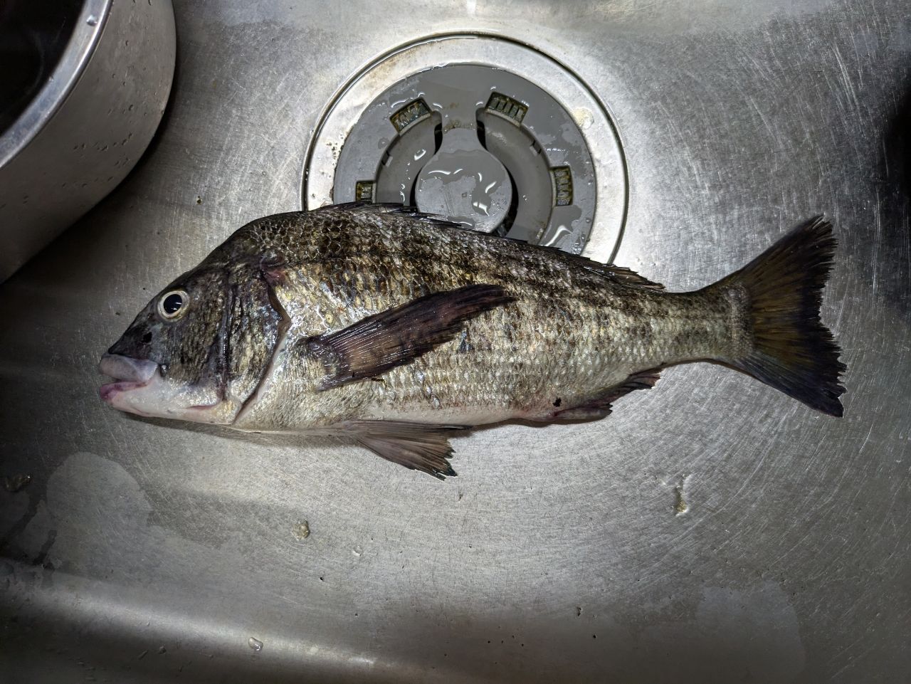 臭いかなーと思いつつ、試しに持ち帰って捌いて見たら血合いが真っ黒!胃の中身は大量の貝!やはり居付きの魚でしたが、意外と刺身でも美味しく頂けました。
