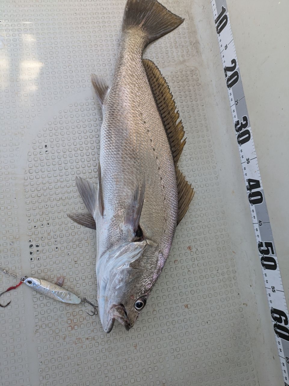 着底からシャクってフォール中にヒット。 1日で3枚のニベでした。 ムニエルで美味しく頂きました。