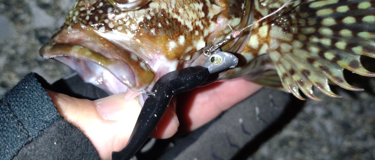 雨の影響がまだ残っており、読みが外れました。ちょっとポイント変えワームをシャッド40に変更した所、1投目でカサゴ🤗