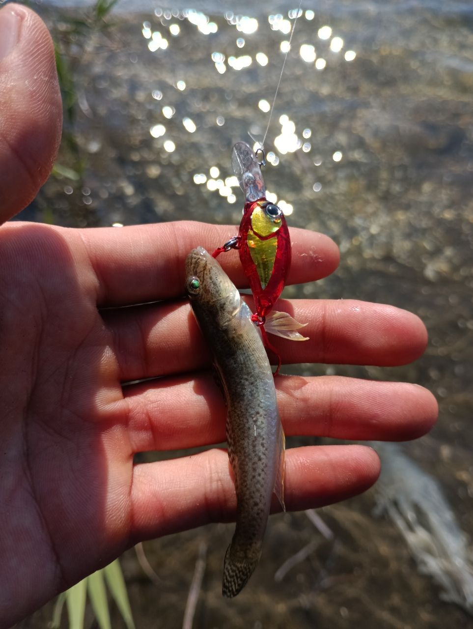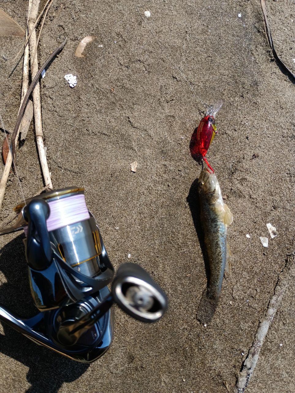 チニングを一通りやって追加できず、強風、満潮潮止まり付近。このタイミングは経験上チニングは厳しいと判断。去年ちょろっとやってすぐに辞めたハゼクランクをやってみることに。タックルはエリアトラウトの物をそのまま流用。以前ハゼ釣りおじさんがたくさん釣っていた現場からスタート。さてどんなものかしらと一投目、ちっさいハゼが4,5匹チェイスでビックリ。チェイスはあるけどかなり小さく、切れ藻が絡まるポイントなので10m移動。底をコリコリ突いて引っ張ると、プルプルっ。うわー釣れたー😆嬉しいことにこのポイントで4本ゲット。その後ここ釣れるかな?ってポイントへ移動し、2箇所目は外し。3箇所目で単発だけど歩いて2本追加。合計6本ゲットできました。普段はウェーディングして見向きもせずに踏み倒してるポイントでハゼが釣れるのって何だか面白いしこういう釣りも大事かなぁと感じました。あと今までハゼ釣りやったことないけど、人生で始めて狙ってハゼ釣れました笑 また時間できたらやろうかなと思いました。なおその後またフリーリグチニングやったけど、追加ならずでした。
