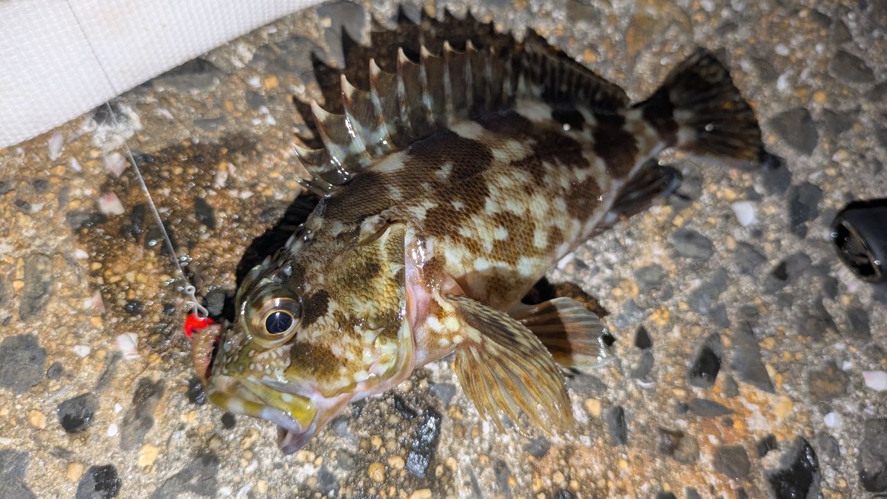 波止の魚の方は前回同様反応薄く、やっと最初のメバル君がつれました